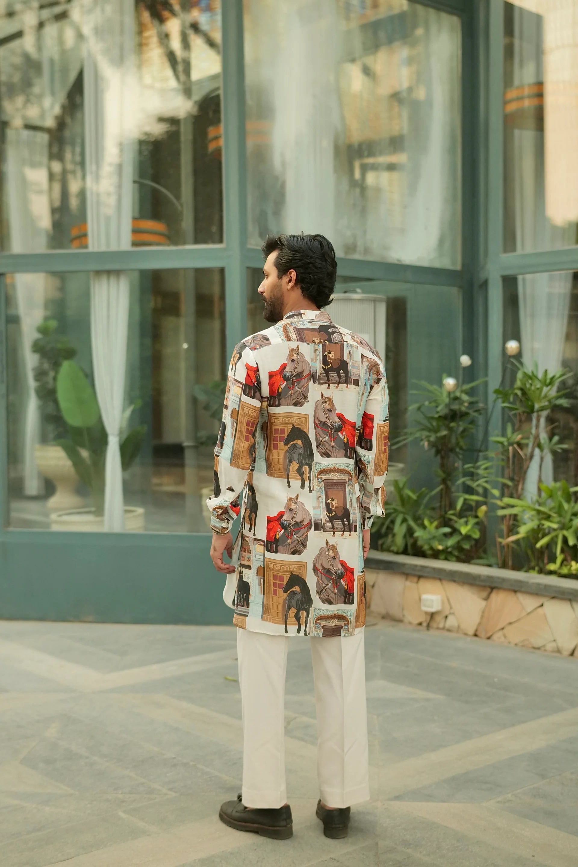 The Marwari War Horse Luxurious Style Kurta draws inspiration from the legendary steeds of Rajasthan's warrior heritage. This premium kurta combines traditional craftsmanship with contemporary elegance, featuring intricate detailing that echoes the bold spirit of Marwari horses. Crafted from fine fabric with meticulous stitching, it delivers both comfort and sophistication. Perfect for festive occasions, cultural celebrations, or anyone seeking to make a distinguished statement. An exceptional piece that honors timeless Indian artistry while offering modern wearability.